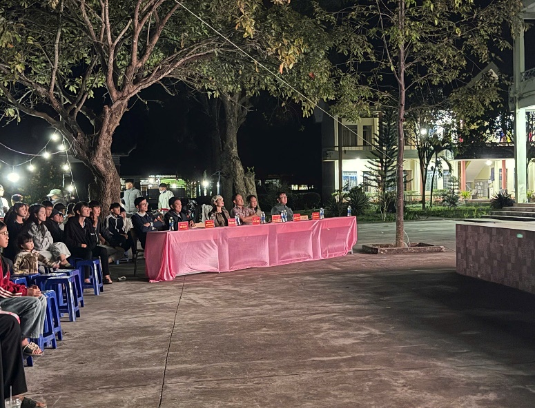 Cán bộ xã, giáo viên, học sinh và nhân dân địa phương tham dự chương trình công chiếu phim “Mưa đỏ” tối ngày 22/12/2025.